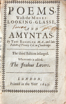 RANDOLPH, Thomas. Poems, With the Muses Looking-Glasse, and Amyntas. London, 1643.