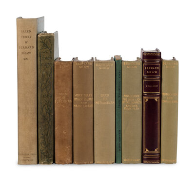Fabian Essays in Socialism. London: The Fabian Society, 1889. FIRST EDITION. -- Man & Superman. 1903. -- John Bull's Other Island. - Major Barbara. 1907. FIRST EDITION. -- Misalliance. - The Dark Lady of the Sonnets. - Fanny's First Play. 1914. FIRST EDITION. -- Misalliance. - The Dark Lady of the Sonnets. - Fanny's First Play. New York: Brentano's, 1914. Later half morocco by J.W. Meyer & Co. -- Peace Conference Hints. 1919. -- Back to Methuselah. 1921. FIRST EDITION. -- Translations and Tomfooleries. 1926. FIRST EDITION. -- ST. JOHN, Christopher, editor. Ellen Terry & Bernard Shaw: A Correspondence. New York: The Fountain Press, 1931. LIMITED EDITION, number 732 of 3,000 copies.