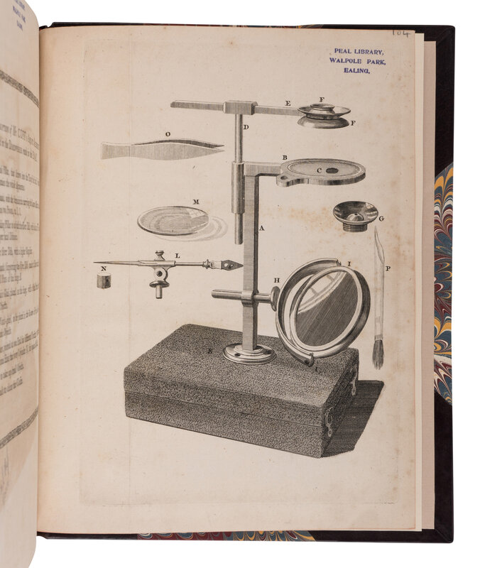 FIRST EDITION, including an additional unnumbered plate with the earliest depiction of Cuff's aquatic microscope not called for in Nissen. Ellis includes a description of a large octopus observed near the North Pole by a whaling party in the summer of 1753. Nissen ZBI 1281.