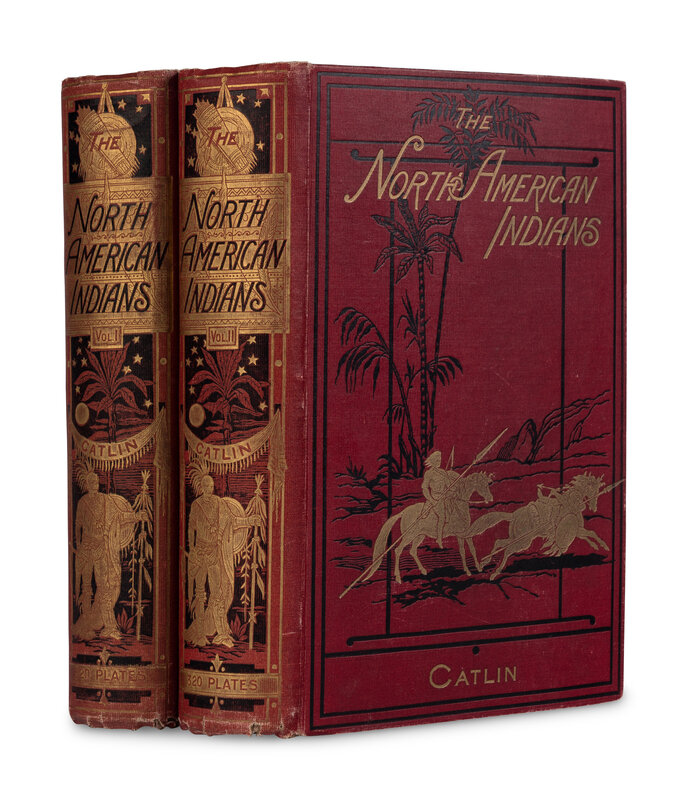 2 volumes, 8vo. Half-titles, title-pages printed in red and black, 320 illustrations (mostly printed in color) on 180 plates after Catlin's original paintings, including frontispieces and one folding map. Original red pictorial cloth stamped in black and gilt, top edges gilt, others uncut (spines very slightly faded, light wear at extreme ends and fore-corners, hinges slightly tender, a few scuffs to rear boards). Provenance: Chas. E Lauriat (booksellers' ticket); later gift inscription.