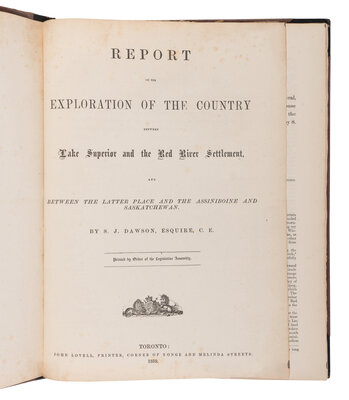 [AMERICANA]. DAWSON, S.J. Report on the Exploration of the Country Between Lake Superior and the Red River Settlement. Toronto: John Lovell, 1859.