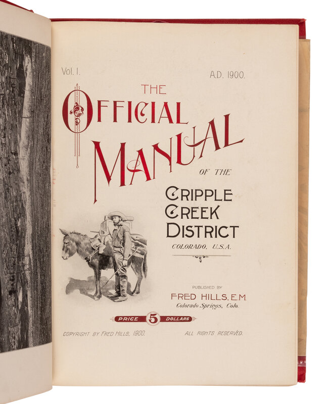 [AMERICANA]. The Official Manual of the Cripple Creek District Colorado, USA. Colorado Springs: Fred Hills, 1900.