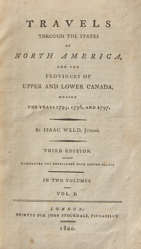 [AMERICANA]. WELD, Isaac. Travels Through the States of North America, and the Provinces of Upper and Lower Canada, During the Years 1795, 1796, and 1797. London: Printed for John Stockdale, 1800.