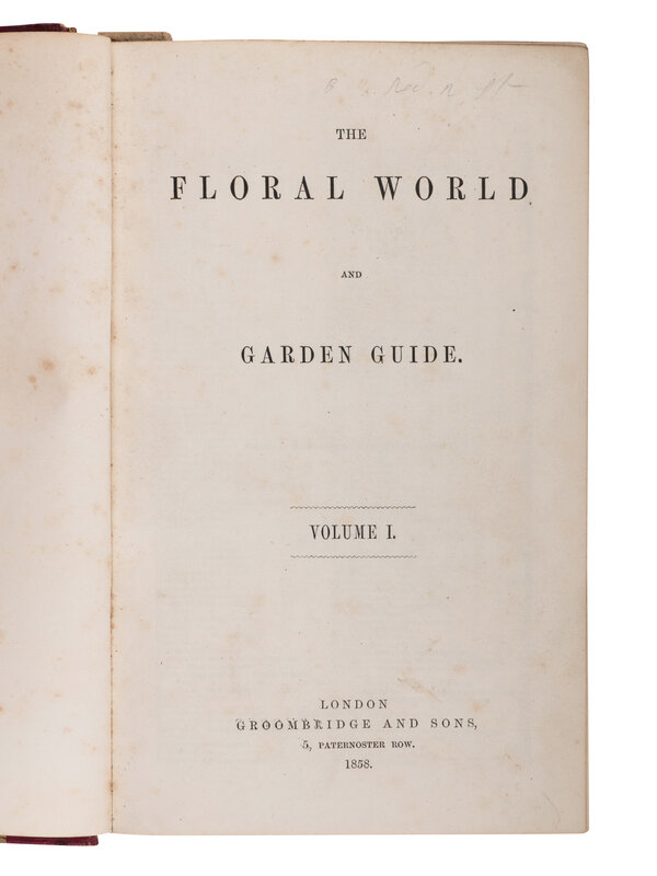 FIRST EDITIONS. Work on The Floral World and Garden Guide began shortly after the publication of Hibberd's Rustic Adornments for Homes of Taste in 1856, and quickly proved its editor to be one of the foremost authorities on amateur gardening. The monthly periodical featured reader correspondence and invaluable tips from Hibberd himself as well as other amateur gardeners for growing plants within urban spaces.