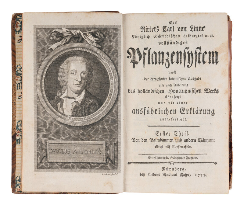 FIRST GERMAN EDITION. Famous for the classification of plants, the most comprehensive of this time, and the introduction of binary nomenclature. Hulth 12; Pritzel 5431; Soulsby 577; Williams 1777.