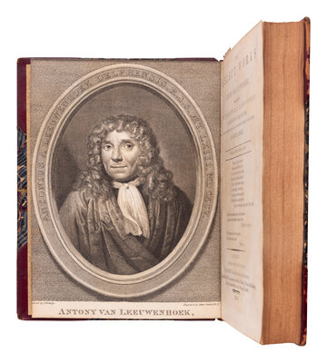 Antonie van Leeuwenhoek was a Dutch microbiologist and microscopist who was often referred to as "the Father of Microbiology." Among his most profound discoveries was the vacuole of the cell, the banded pattern of muscular fibers, and spermatozoa, the last discovery so controversial at the time that all references to it were carefully excised from this edition (Dobell, p. 410). Garrison-Morton 67, 265; Grolier/Horblit 65 (both citing the 1686--1718 original Dutch editions); Printing and the Mind of Man 166.
