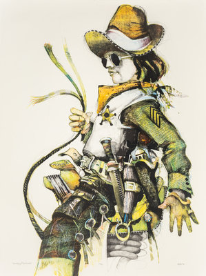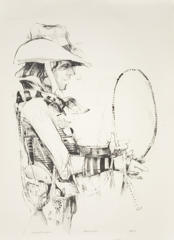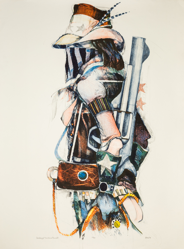 A group of three works: Wranglers, 1974, Cowboy Sunshine Bandit, 1974, and Buckaroo, 1974