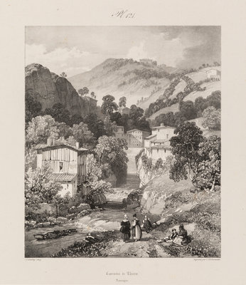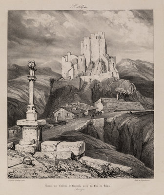 including Chteau de Larderole, 1832, glise de Saint-Nectaire, Ruines du Chteau de Bouzols, prs du Puy en Velay, 1831, and Vue gnrale des ruines du chteau et du village de Saint-Nectaire by Louis-Gabriel-Eugne Isabey (French, 1803-1886) together with Cascades de Thiers, Auvergne and Vue gnrale de Volvie, Auvergne by James Duffield Harding (English, 1798-1863)