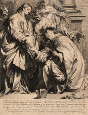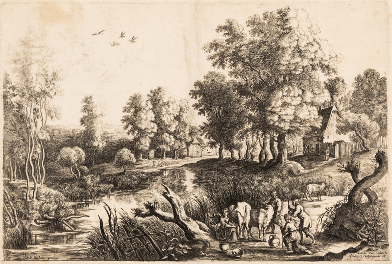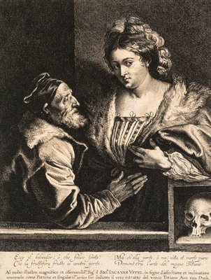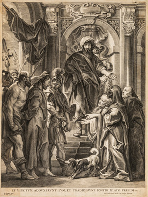 A group of 4 works: Titian and His Mistress by Sir Anthony Van Dyck (Flemish, 1599-1641), Jesus Before Pilate, after Jacobus Jordaens by Jacobus Neeffs (Dutch, 1610-1660), Cardinal Joseph Kneeling Before the Virgin, after Sir Anthony Van Dyck by Paulus Pontius (Flemish, 1603-1658), and Landscape, after Peter Paul Rubens by Lucas Van Uden (Flemish, 1595-1672)