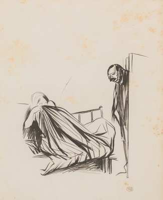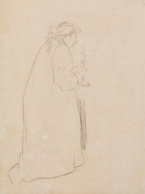 A group of four works: Woman with a Candle, Woman with Fan, Untitled, and Untitled