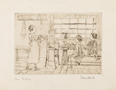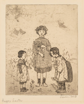 A group of three works: Happy Easter, Nativity, and Plum Pudding