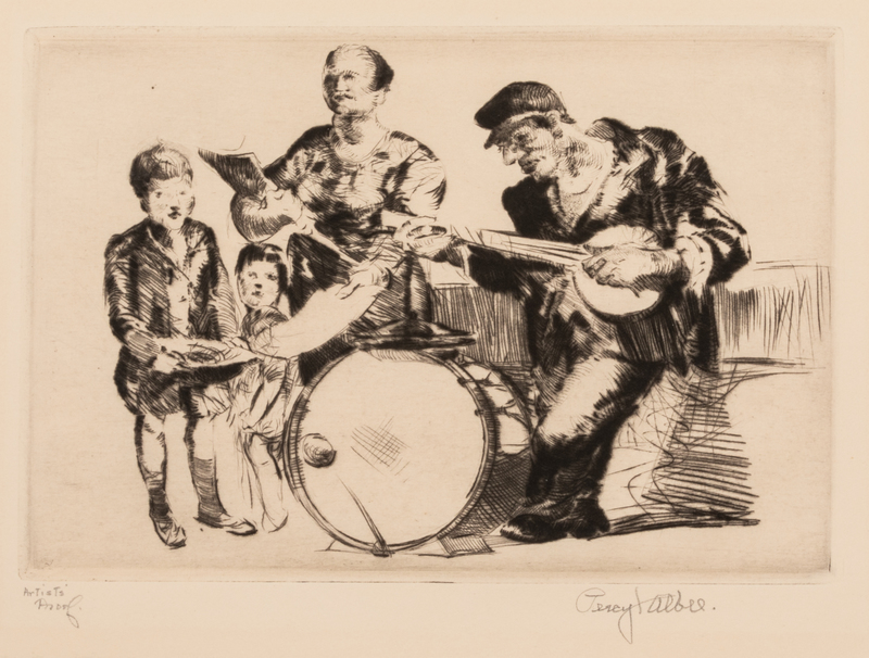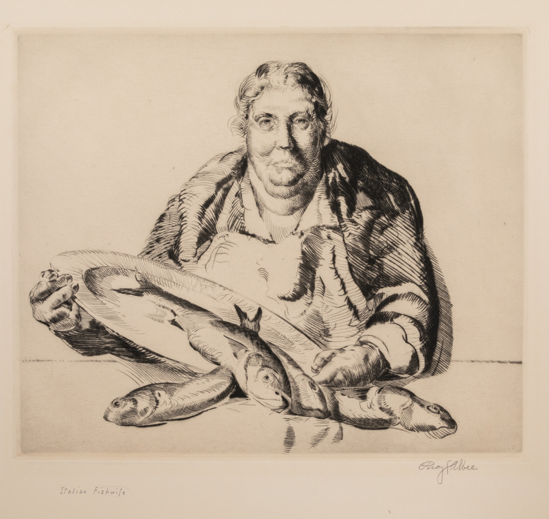 A group of five works: Italian Fishwife, Italian Fishwife, Street Musicians, Idlers, and Poor Mother