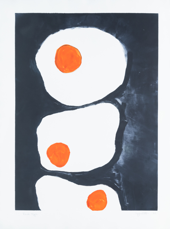 including Folded Paper, 1982 by Leo Joseph Dee (American, 1931-2004), Untitled (Paris Exhibition Poster) by Ed Kienholz (American, 1927-1994) and Fried Eggs, 1989 by Janet Lippincott (American, 1918-2007)