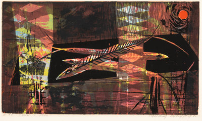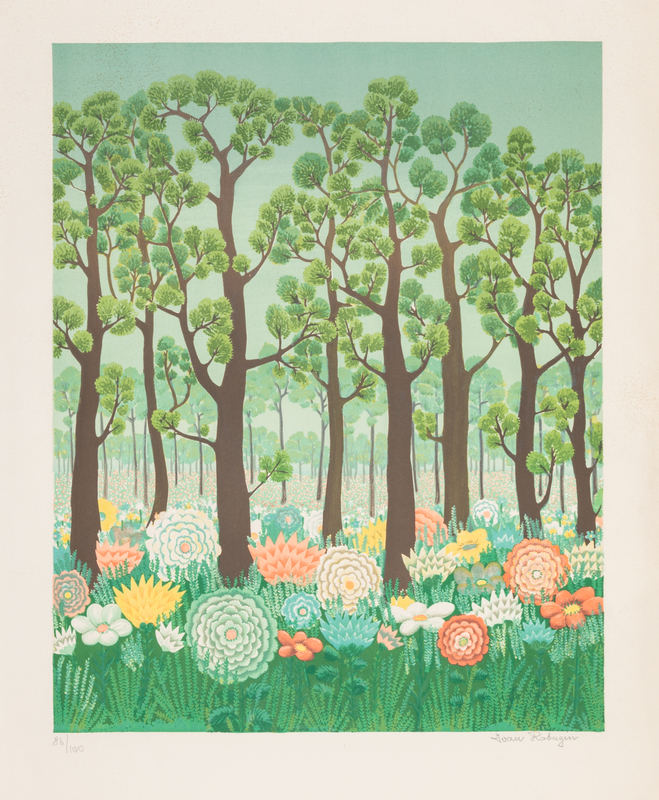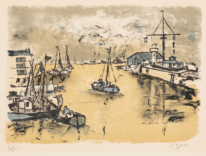 including Hunger by Gertrude Quastler (American, 1909-1963), Forest and Flowers by Ivan Rabuzin (Croatian, 1921-2008), Le Port d'Honfleur by Celso Lagar (Spanish, 1891-1966) and Table and Fish by Howard Bradford (Canadian-American, 1919-2008)
