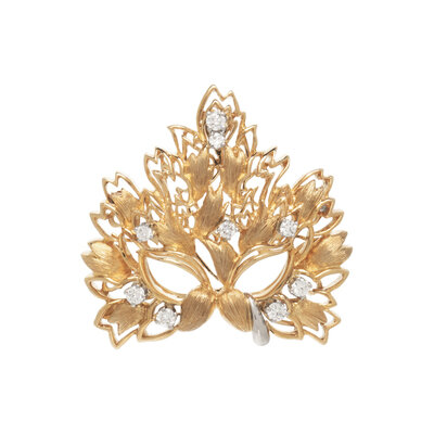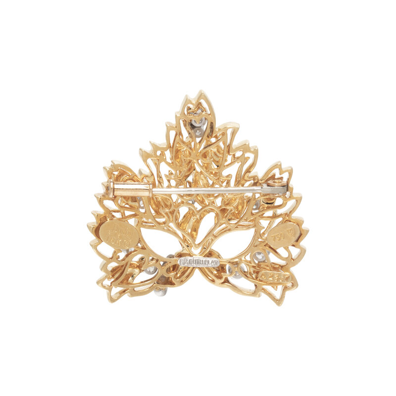 HENRY DUNAY, YELLOW GOLD AND DIAMOND MASK BROOCH
