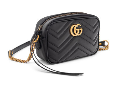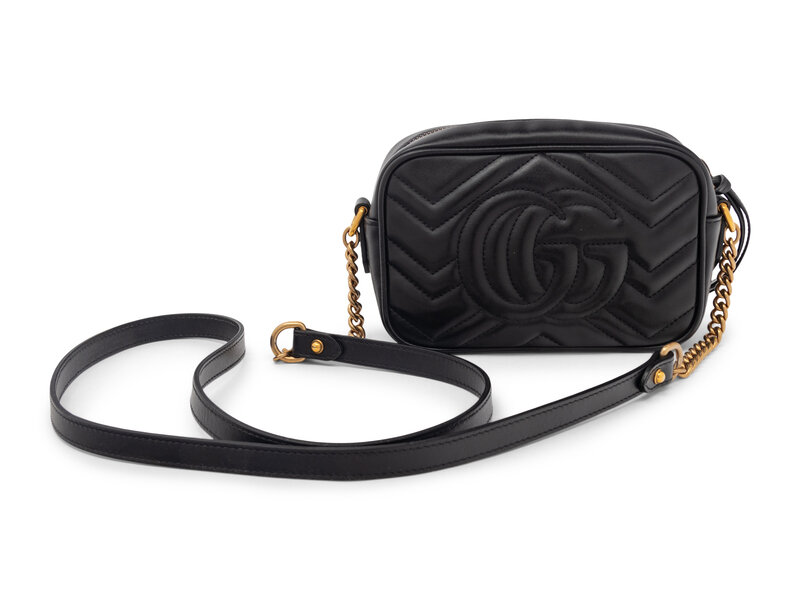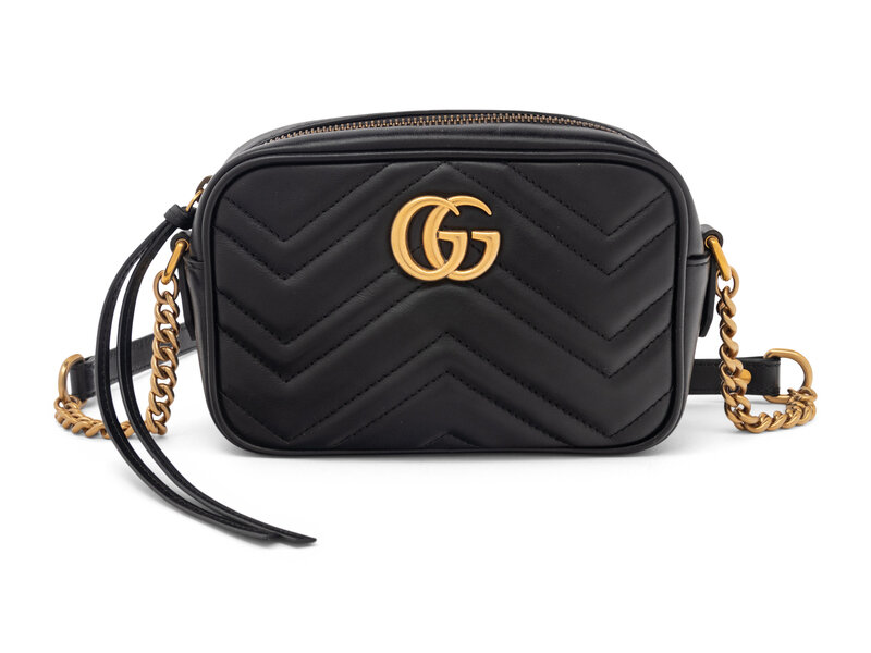 Mini GG Marmont Shoulder Bag in Black Quilted Leather with Aged Gold-Tone Hardware.