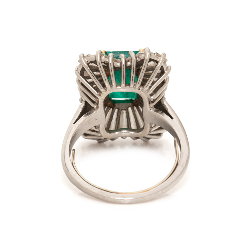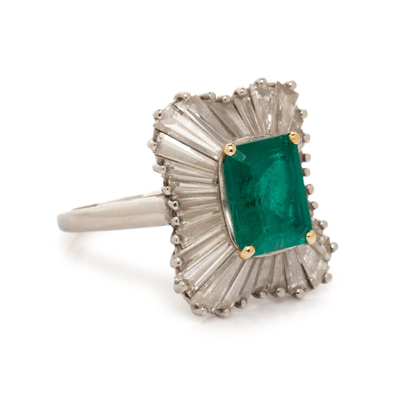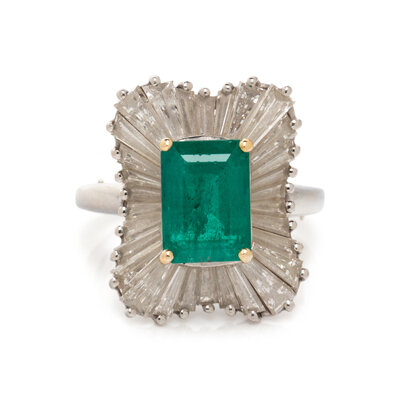 PLATINUM, EMERALD, AND DIAMOND BALLERINA RING
