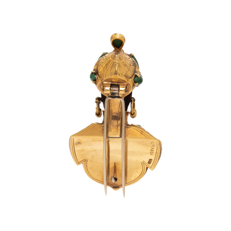 NARDI, YELLOW GOLD AND JADE BROOCH