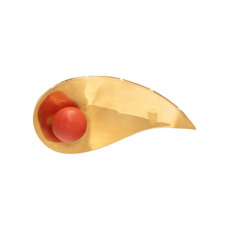 YELLOW GOLD AND CORAL BROOCH