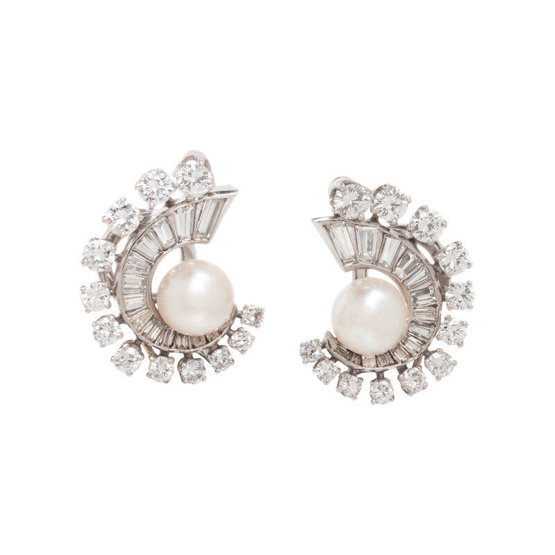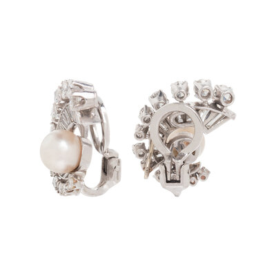 CULTURED PEARL AND DIAMOND CLIP EARRINGS