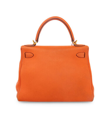 Hermès Kelly 28 Retourne in Potiron Clemence Leather with Gold-Plated Hardware.