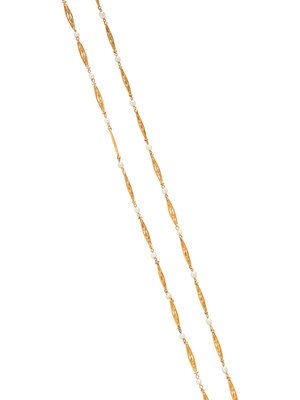 Seed pearls measuring approximately 3.50 mm. Yellow gold. 32 3/8 inches long.