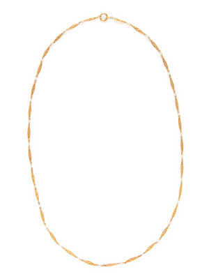YELLOW GOLD AND SEED PEARL FANCY LINK NECKLACE