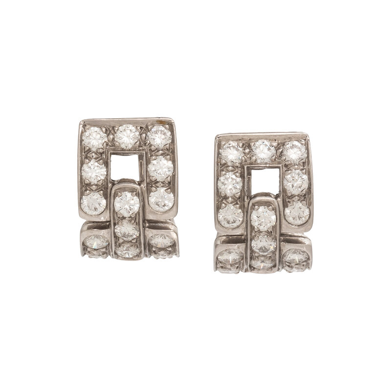 TIFFANY & CO., PLATINUM AND DIAMOND 'DECO' HOOP EARRINGS