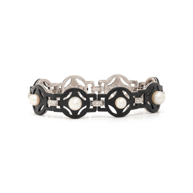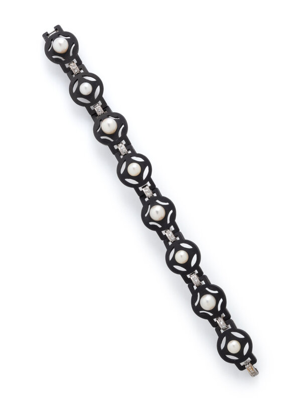 MARSH & CO., STEEL, DIAMOND, AND CULTURED PEARL BRACELET