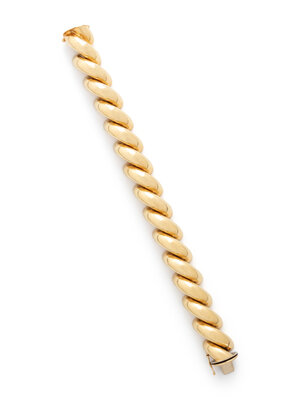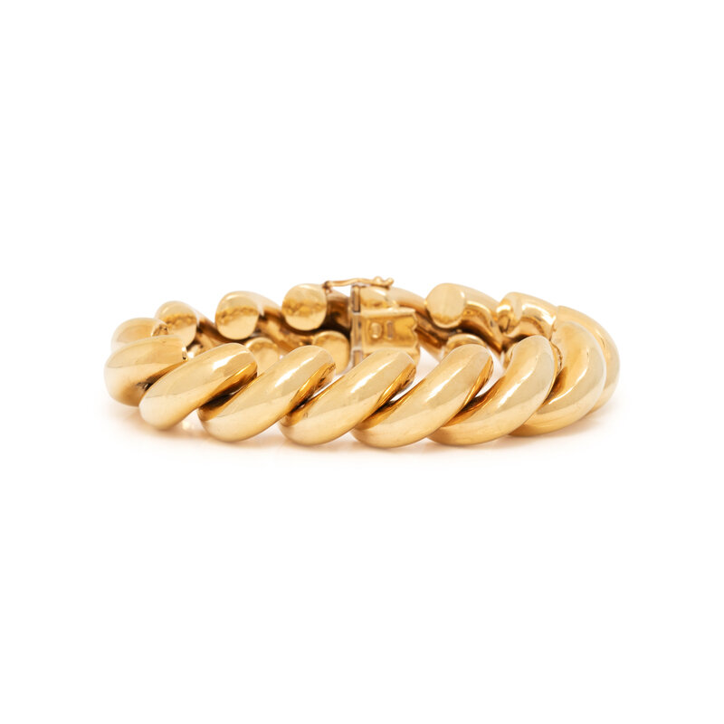 San Marco links measuring approximately 15.00 mm with a high polish finish. 18 karat yellow gold. 7 3/4 inches long.