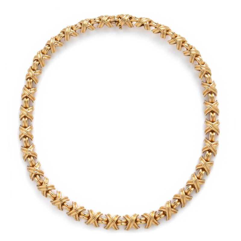 TIFFANY & CO., YELLOW GOLD 'SIGNATURE X' NECKLACE