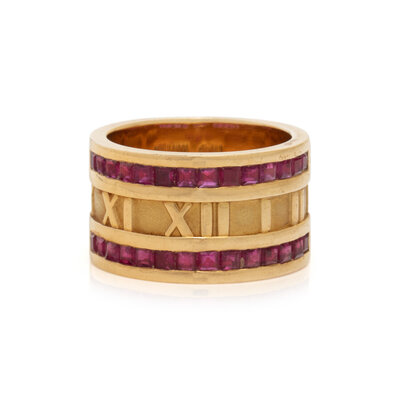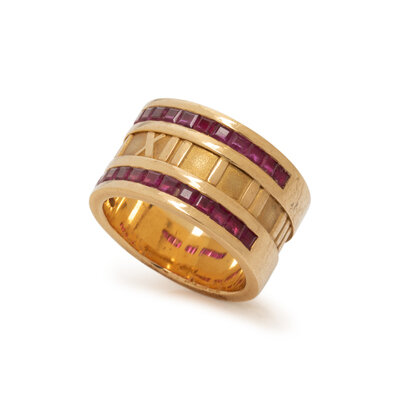 TIFFANY & CO., YELLOW GOLD AND RUBY 'ATLAS' RING