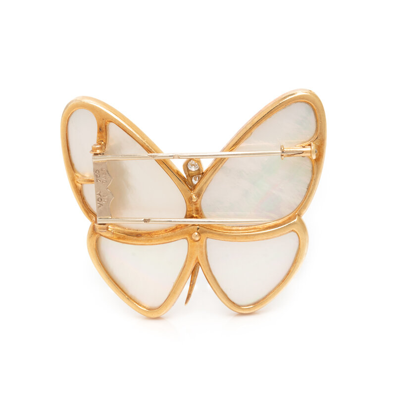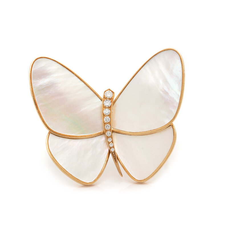 VAN CLEEF & ARPELS, MOTHER-OF-PEARL AND DIAMOND BUTTERFLY BROOCH