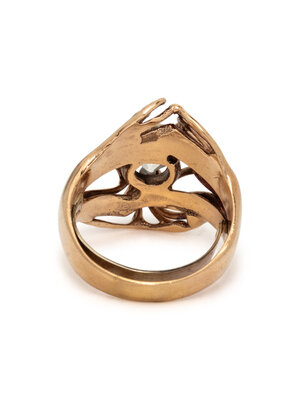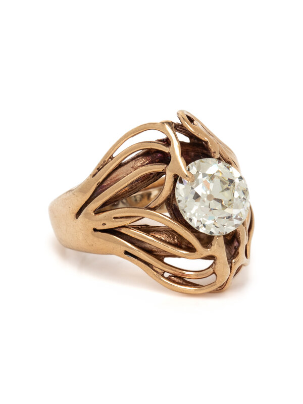 Set with one old European brilliant cut diamond weighing 2.75 carats. Mounted in yellow gold. Ring size 8 1/2.