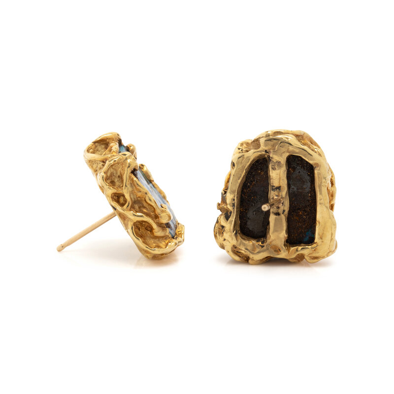 ARTHUR KING, YELLOW GOLD AND BOULDER OPAL EARRINGS