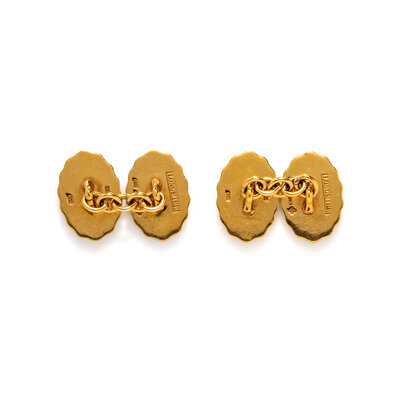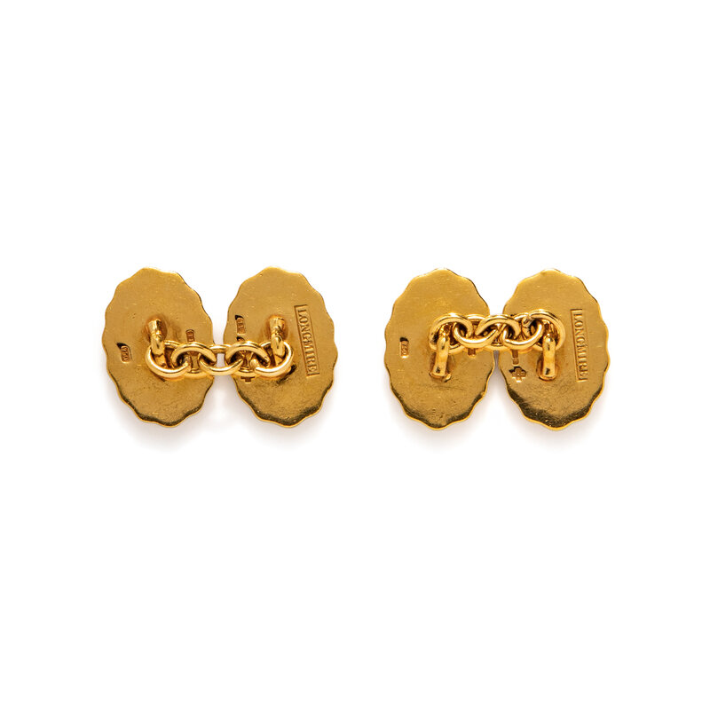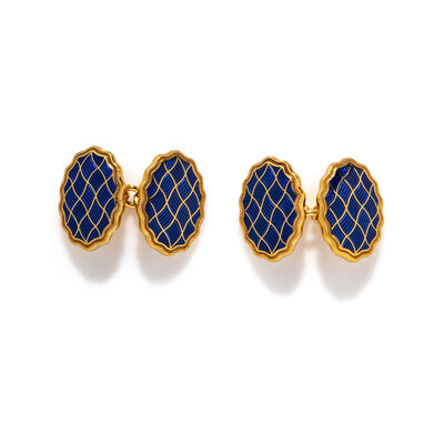 LONGMIRE, YELLOW GOLD AND BLUE ENAMEL CUFFLINKS