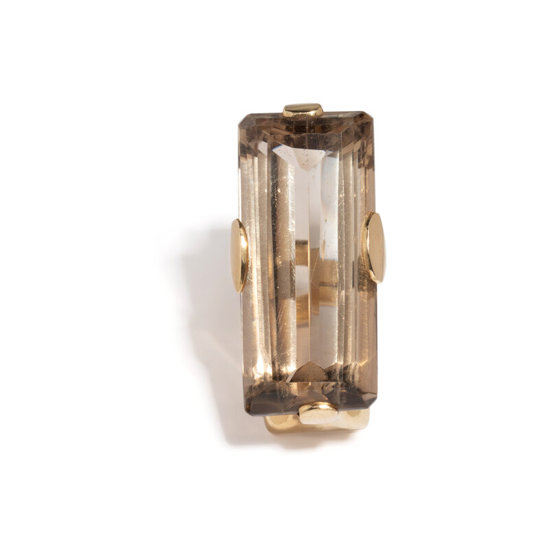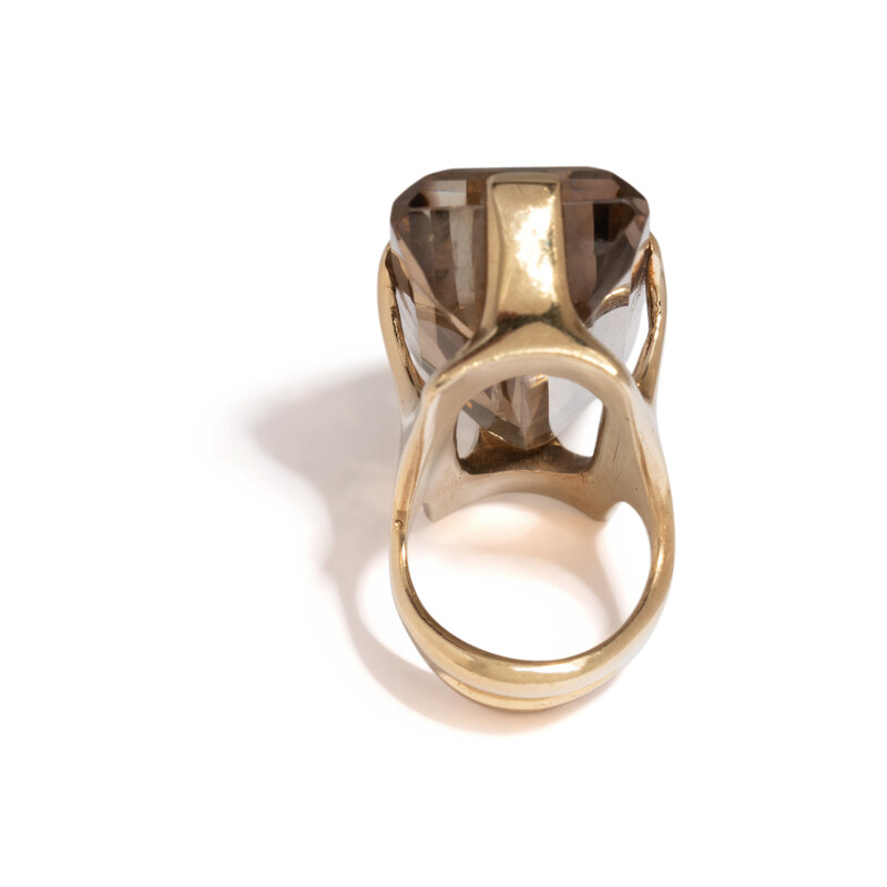 SMOKEY QUARTZ AND YELLOW GOLD RING