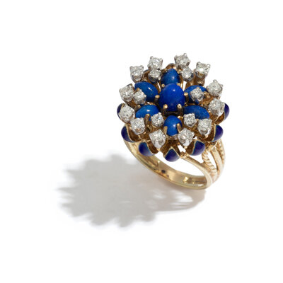 LA TRIOMPHE, LAPIS LAZULI, DIAMOND, AND BLUE ENAMEL RING