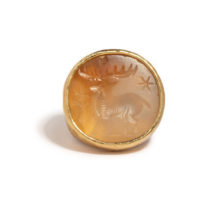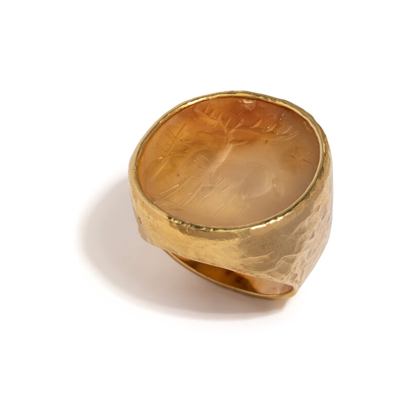 ED WIENER, YELLOW GOLD DEER INTAGLIO RING