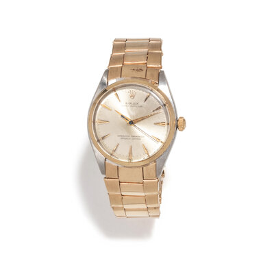 ROLEX, REF. 1002 STAINLESS STEEL AND YELLOW GOLD 'OYSTER PERPETUAL' WATCH