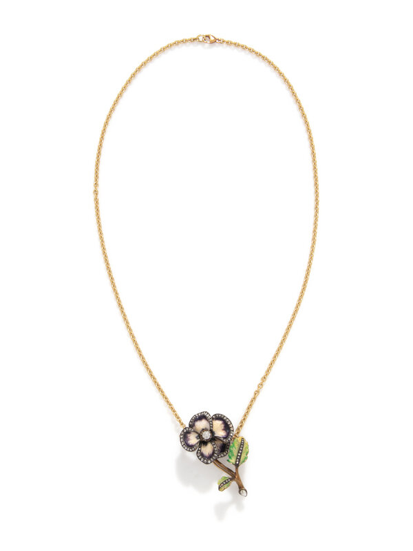 YELLOW GOLD, DIAMOND AND ENAMEL NECKLACE