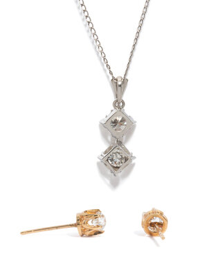 DIAMOND PENDANT NECKLACE AND DIAMOND STUDS