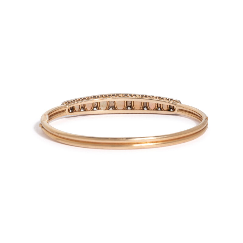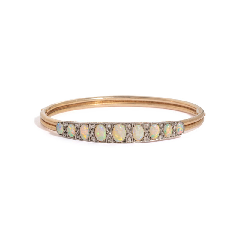 GOLD, OPAL, AND DIAMOND BANGLE BRACELET