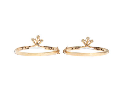 PAIR OF YELLOW GOLD AND DIAMOND BANGLE BRACELETS