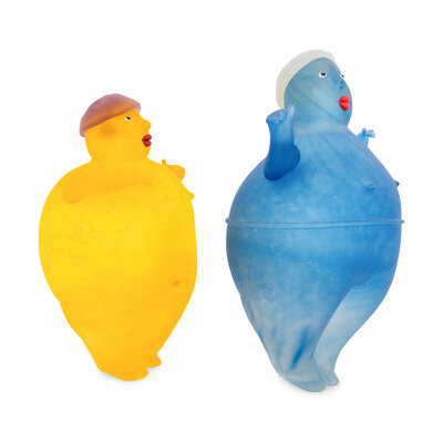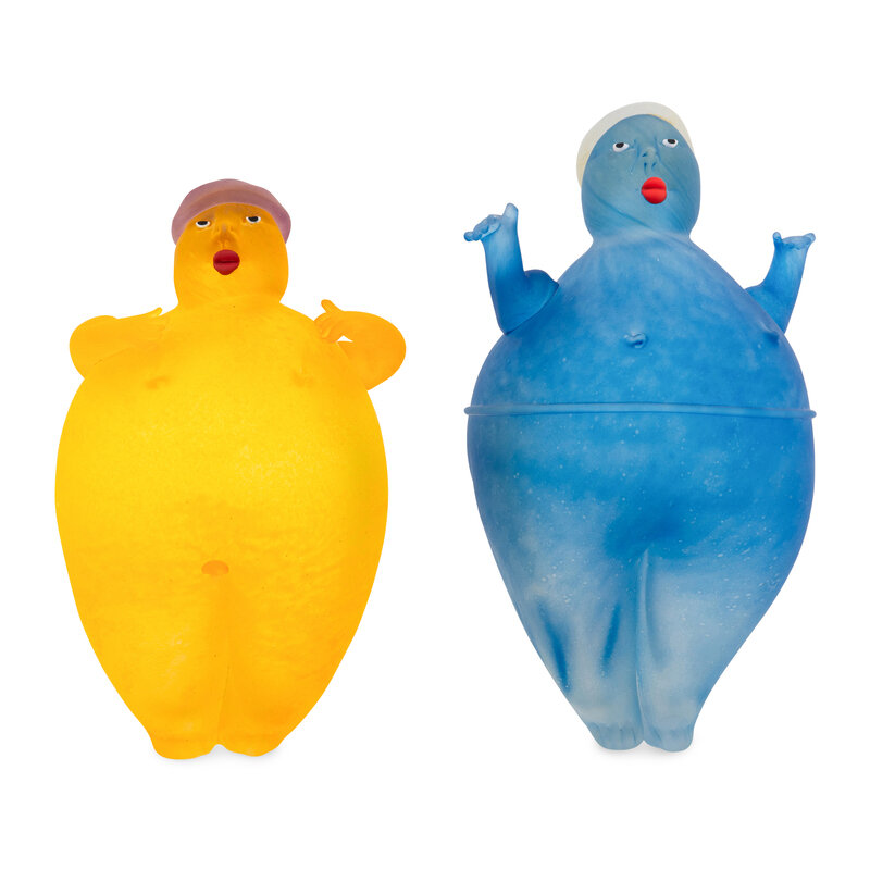 14 h × 8 w in (35 ×20 cm) | Blue puppet; 12½ h × 7 w in (32 × 18 cm) | Yellow puppet
