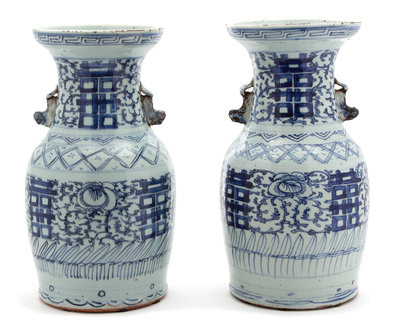 Pair of Chinese Blue and White Porcelain Vases