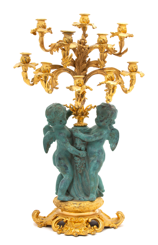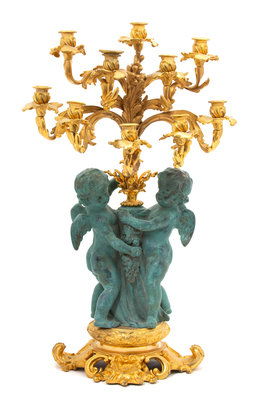 A Louis XV Style Parcel Gilt & Patinated Bronze Ten-Light Candelabrum