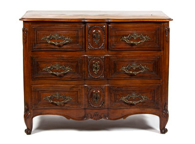 A Louis XV Provincial Style Carved Walnut Commode