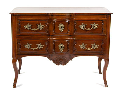 A Louis XV Provincial Style Carved Fruitwood Commode