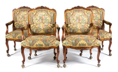 Four Louis XV Style Carved Walnut Fauteuils